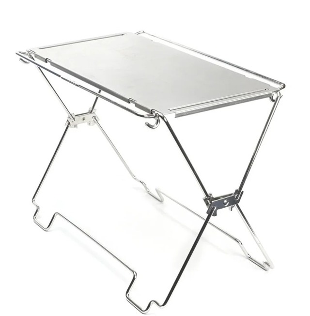 ソロからファミリーやグループまで、人数やスタイルに合わせて求められる テーブルの大きさや機能は大きく変わります。ソロ用のコンパクトテーブルは 大人数には少し心もとない一方、大型テーブルを少人数で持ち出すのは大げさ に感じる。そんなシーンをスマートに解決できないかという想いから生まれた のが、マルチフレームテーブル(MFT)です。 道具を“便利” で終わらせるのではなく、使うほどに想像力を広げてくれる“相 棒” のような存在でありたい。そこで、従来のテーブルのイメージを一新し、「変 形」することで食事や作業に使えるテーブルになったり、ハンガーラックや棚 としても活躍できる柔軟な構造を採用しました。ソロやデュオでのメインとし ても、大型テーブルのサブとしても幅広く対応し、荷物を増やさずにどんなキャ ンプスタイルにも寄り添う多用途設計を実現しています。 私たちが目指したのは、キャンプで“もうひと工夫ほしい” と思うすべての場 面に応えるギアをつくること。MFT は、その想いをかたちにした新しい選択肢 として誕生しました。 材質 フレーム:アルミニウム、ステンレス、樹脂 天板:ステンレス サイズ 組立サイズ: フレームを閉じた状態:W83 x D6 x H52cm/73cm フレームを1段階開いた状態:W83 x D26 x H48cm/69cm フレームを2段階開いた状態:W83 x D35.5 x H40cm/61cm 天板サイズ: W36 x D25 x H1cm 収納サイズ: W93 x D30 x H5.5cm 重量 約4.1kg 生産国 中国 梱包内容 フレーム、天板2枚、収納ケース ※バーナーは付属しません。 その他 注意事項等 ・付属するステンレスパネルは2枚です。 ・バーナーは付属しません。 ・本製品は予告なく仕様を変更する場合があります。 ・ディスプレイの環境により画像の色味が異なる場合があります。