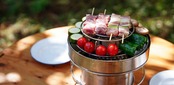 着火・消火・再着火を本体だけで行えるステンレス製の進化型七輪。クラウドファンディングで1,880人から3,200万円以上の支援を集めた注目アイテムです。