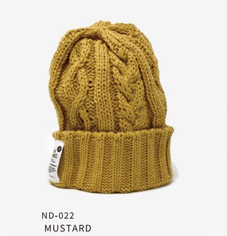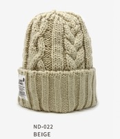 アウトドアロープをイメージした、存在感のあるケーブル編みニット帽。