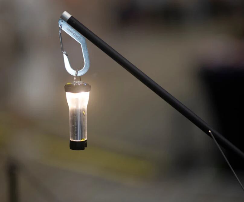 直線のランタンスタンドではテーブルと干渉し、テーブル上を照らすのに不向