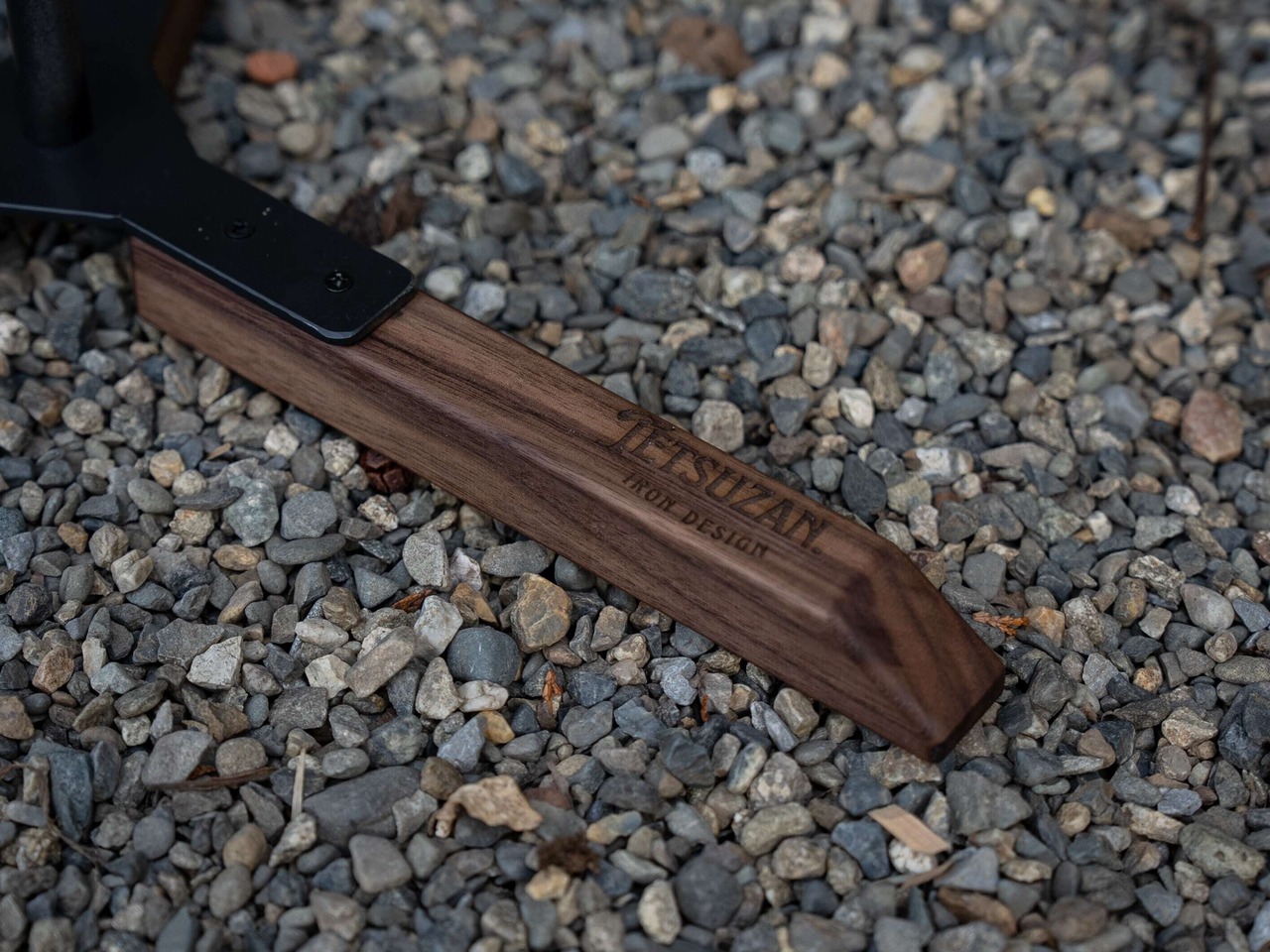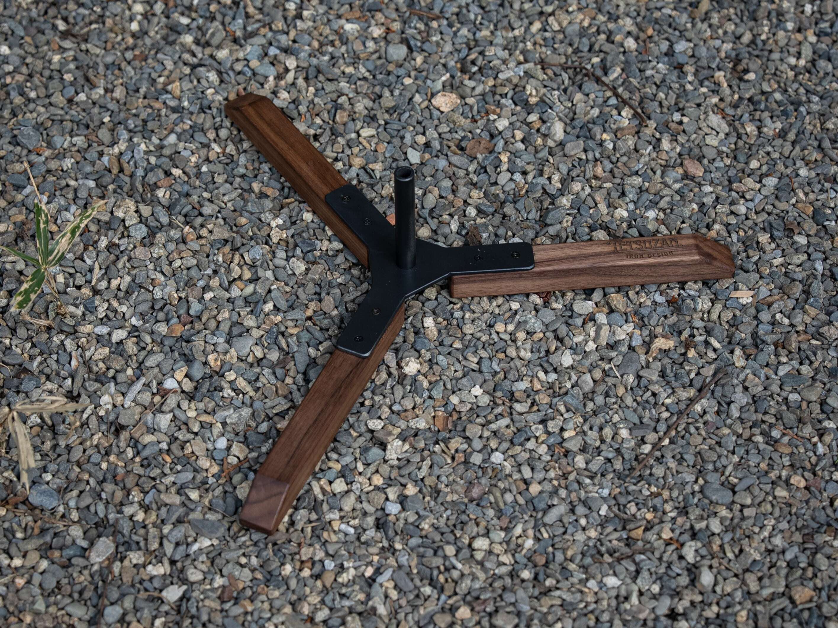 三点支持でしっかりと支える三脚構造でウォルナットとアイアンの組み合わせが、