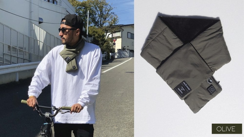 首元を約10秒で温めてくれる電熱の中綿マフラー